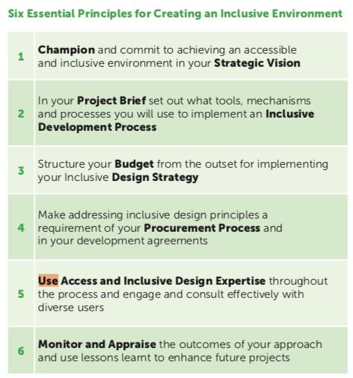 If leaders in the construction industry champion inclusion from the outset, those employed to design, construct and manage projects are more likely to achieve high quality accessible and inclusive developments.