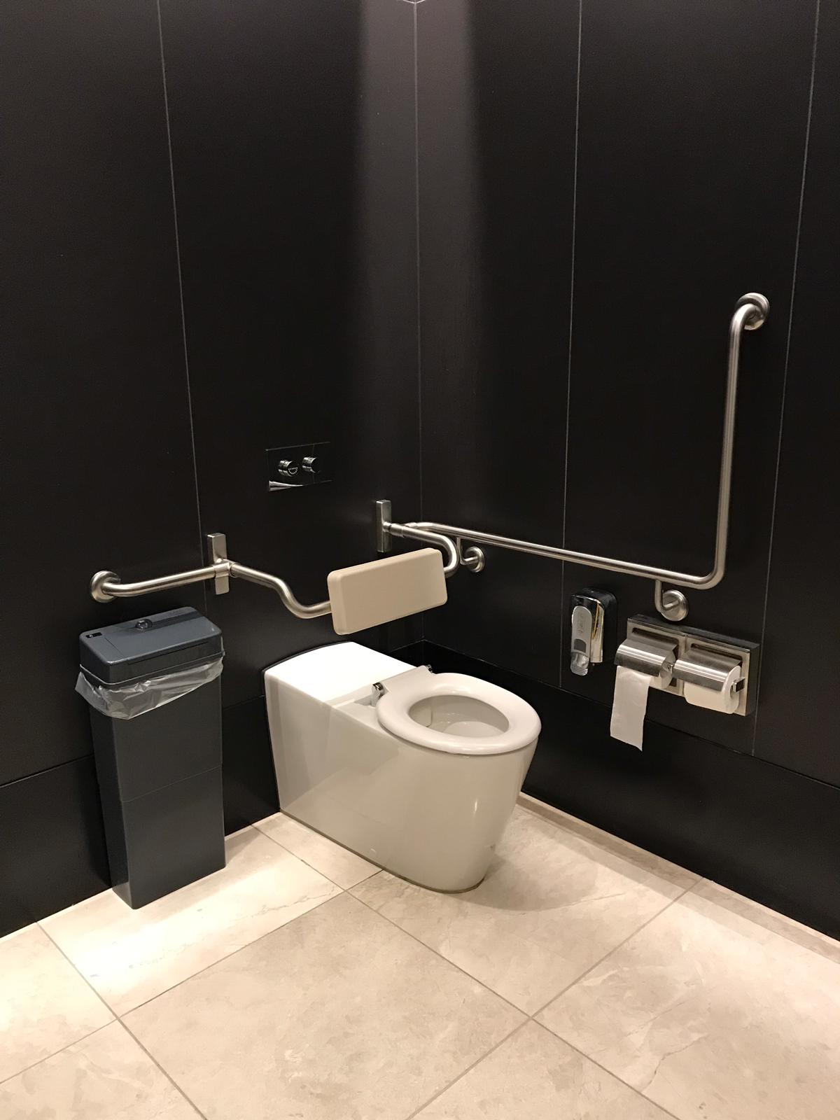 Depending on the door location and plan layout of fitments, the space required for circulation space within an accessible toilet must be at least, say 2640 x 2100mm,  clear of wall linings, tiles and so on.